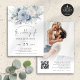 Dusty Blue Florals Photo Overlay QR Code Wedding Invitation