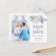 Dusty Blue Florals Photo Save the Date Postcard
