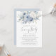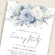 Dusty Blue Florals QR Code Wedding Evening Party Invitation