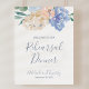 This dusty blue florals rehearsal dinner welcome sign poster is perfect for a spring or summer wedding rehearsal. The dainty design features light blue peonies arranged with peach and cream flowers in a gorgeous bouquet.