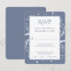Send guests a simple and elegant Dusty Blue Flourish Wedding RSVP Card with your invitation. Response card design features an elegant leafy flourish with matching colored background. Personalize with the response date and menu choices. Additional wedding stationery available with this design as well.