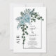 Dusty blue flowers arch and monogram wedding invitation