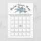 Dusty blue watercolor flowers bouquet bridal Shower bingo game card. This lovely design showcases a bouquet of blue cactus flowers and bluish green succulent.