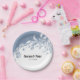 Vintage dusty blue and white flowers and typography wedding paper plate. It showcases a vintage floral border and your text in modern typography.