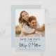 Dusty Blue Fun Script Modern Photo Minimalist Wedding Save The Date Invitation Card. Let your family, friends and colleagues know that you have set a date for your wedding celebration with this elegant, stylish and modern wedding save the date invitation card. All the texts are pre-arranged for you to personalize easily and quickly with your own details.