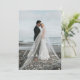 Elegant Script Photo Overlay with Elegant Watercolor Dusty Blue Garden Floral Arrangement, wedding photo thank you card. Features, template text lines for your names and personalized message.