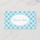 A pretty blue gingham pattern decorates this professional business card. Customize this retro style business card to suit your needs. Change the text, font size, etc... Add or delete text. The design is from original art. Use this professional business card for a boutique, bakery, daycare, child care, alterations, bakery, florist, cosmetologist, appointments, hair stylist, salon, bed and breakfast, catering, home decor, interior design,etc...
