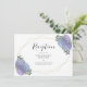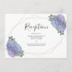 This beautiful, elegant boho design features watercolor bouquets with hydrangea flowers in shades of dusty blue, light periwinkle, lavender purple and lilac, along with eucalyptus leaves and a trendy gold geometric frame. Inside the frame is the customizable text for your special event in popular typography. The back of the card features a pastel dusty blue background. You can personalize this item by changing the text in the template.