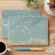 This envelope is designed to coordinate with the Dusty Blue Gold Arch collection. It is an elegant abstract botanical design in shades of dusty blue and accented with gold and white glitter shapes. It fits a 5 inch by 7 inch invitation. I didn't include a blank space for writting on the front or back, because most people prefer to use their own mailing labels. it is hard to match the space for this from afar.