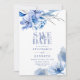 This enchanting design features bold "Save the Date" typography paired with delicate dusty blue watercolor flowers and a touch of rustic gold glitter. It creates a memorable announcement that reflects the charm and elegance of your special day. Personalize it with your names, wedding date, and location. Let your guests know a formal invitation will follow, keeping them excited for the big event. The chic back features a subtle touch of the same dusty blue floral design, completing the perfect announcement.