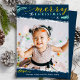 Dusty Blue Gold Script Minimalist Photo Christmas Holiday Card