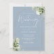 Dusty Blue Greenery Floral Gold Arch Photo Wedding Invitation