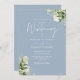 Dusty Blue Greenery Floral QR Code Wedding Invitation