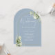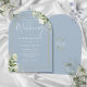 Dusty Blue Greenery Gold Arch Monogram Wedding Invitation