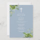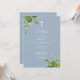 Dusty Blue Greenery Monogram Baptism Christening Invitation