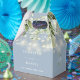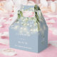 Elegant dusty blue floral greenery string lights wedding favor box personalized with your names, monogram initials, wedding date and special message. Designed by Thisisnotme©