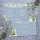 An elegant dusty blue greenery floral string lights wedding details information enclosure card personalized with your special details set in stylish typography and your names and wedding date on the reverse. Designed by Thisisnotme©
