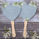 Dusty Blue Greenery Wedding Program Heart Hand Fan
