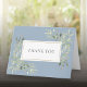 An elegant thank you card, featuring delicate watercolor greenery leaves on a dusty blue background framing your thank you message set in an elegant text. Designed by Thisisnotme©