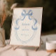 Celebrate in style with this vintage inspired bridal shower cards and gifts sign featuring a dusty blue hand drawn oval frame with a bow.