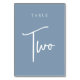 Simple and chic table number cards in dusty blue and white make an elegant statement at your wedding or event. Design features "table [number]" in an eyecatching mix of classic serif and handwritten script lettering. Design repeats on both sides. Individually numbered cards sold separately; order each table number individually from our collection.