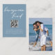 This dusty blue honeymoon fund card exudes tranquility for a summer coastal wedding by the sea. Personalize this light grey blue insert card with elegant minimalist typography and your couple photo on the back. Add your website to the qr code on the front.