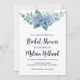 Celebrate your upcoming bridal shower with these elegant and romantic invitations. Featuring a beautiful watercolor painting of dusty blue hydrangeas, accented with delicate greenery and elegant calligraphy, these invitations are perfect for a spring or summer celebration. The soft blue and white color palette creates a timeless and sophisticated look.