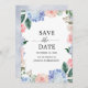 Modern wedding save the date card featuring light blue/ dusty blue watercolor hydrangeas with pastel pink , blush, peach , white roses, peonies, sage eucalyptus leaves, branches and foliage. Muted soft and dreamy romantic shades spring summer watercolor floral designs to match with your themed wedding. Please find more matching designs and variations from my "blissweddingpaperie" store. And feel free to contact me for further customization or matching items.