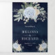 Dusty Blue Ivory Floral All in One Navy Wedding Tri-Fold Invitation