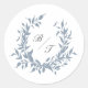 Dusty Blue Leafy Crest Monogram Wedding Logo Classic Round Sticker