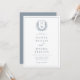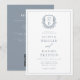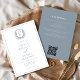 Dusty Blue Leafy Crest Monogram Wedding QR Code Invitation