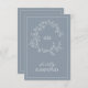 Dusty Blue Leafy Crest Monogram Wedding RSVP Card