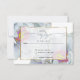 Wedding RSVP | Modern text fits nicely inside this beautiful sheer white gold edged frame that showing the underlying fantasy Dusty Blue and Lilac Exotic flowers edged in gold - original artwork © by WhimsicalArtwork™.