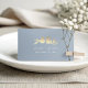 Romantic wedding place card featuring two gold foil look lovebirds on a dusty blue background. Elegant script font for names and date adds a soft, personal touch. Perfect for assigning reception seats with style and charm. Coordinates with the full Dusty Blue and Gold Lovebirds wedding suite for a cohesive event look. Easily customizable with guest names for a polished seating display.
