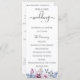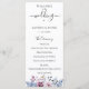 Elegant dusty blue and mauve watercolor flowers and foliage, wedding program. Program features cute calligraphy "wedding" accent with multiple lines for custom text lists for ceremony order of events, wedding party and thank you note.
