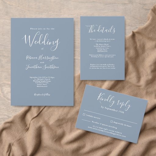 Dusty Blue Modern Script Wedding SuiteDesigned by Amanda MacLeod