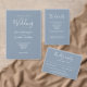 Wedding invitation RSVP enclosure card features an elegant, modern and clean typographical design with a dusty blue colour scheme. This reply card is ready for you to customize with the details of your special day. Please browse the Dusty Blue Modern Script Wedding Suite for matching stationery items.