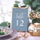 Enhance your wedding reception with understated elegance. These minimalist table numbers feature a single word, "Table," in delicate calligraphy script on a soothing dusty blue background. The simple yet refined design adds a touch of sophistication to your table setting, allowing your floral arrangements and other décor to shine.
