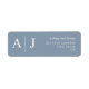A modern minimalist monogram wedding invitation return address label featuring a dusty blue color design. Personalize this design template with custom name, initials and details.