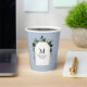 Dusty Blue Modern Botanical monogrammed wedding Paper Cups
