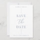 Modern, elegant save the date card features a minimalist dusty blue and white design. Personalize with your wedding details with the easy to edit template featuring an elegant script font and classy serif font. Replace the photo on the front and back with your own and update your wedding website URL. Check out matching items in the “Dusty Blue Modern Elegant” collection.
