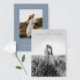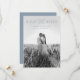 Modern, elegant save the date card features a minimalist dusty blue and white design. Personalize with your wedding details with the easy to edit template featuring an elegant script font and classy serif font. Replace the full photo on the front with your own with the option to remove the black and white filter. Then, replace the back photo with your own and update your wedding website URL. Check out matching items in the “Modern Elegant” collection.