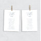 Modern, elegant seating chart card by table features a minimalist dusty blue and white design. Personalize with your guest's names and table numbers with the easy to edit template featuring an elegant script font and classy serif font.