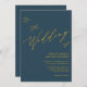 Dusty Blue Modern Gold Script All In One Wedding Invitation