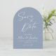 This dusty blue modern minimalist elegant wedding save the date is designed to complement a variety of wedding themes and seasons! Whether you're planning a romantic spring garden wedding, a chic summer soirée, a cozy fall celebration, or a timeless winter affair, this design blends seamlessly with your vision. Featuring an arched shape, elegant calligraphy script, and a soft dusty blue color palette, it exudes sophistication while keeping things clean and modern. This timeless design works beautifully with classic, boho, rustic, or contemporary styles, making it a versatile choice. Customize all the details to reflect your big day and send it digitally for a stress-free, eco-friendly option. Order yours and make your wedding announcement effortlessly stylish!