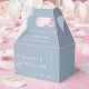 This dusty blue minimalist monogram wedding favor box can be personalized with your information in modern typography. Designed by Thisisnotme©