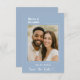 Announce your special day in style with this modern dusty blue Save the Date card. Featuring your favorite photo framed by a minimalist white line border, it perfectly blends timeless elegance with a personal touch. The handwritten script adds a romantic detail, while the clean layout keeps the design contemporary and easy to customize.