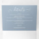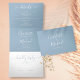 All in one dusty blue tri-fold wedding invitation featuring elegant typography. The invitation includes your celebration guest information details and a detachable RSVP card. Designed by Thisisnotme©