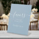 Dusty Blue Modern Script Wedding Favors Table Pedestal Sign