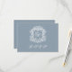Dusty Blue Monogram Crest Elegant Wedding RSVP Card